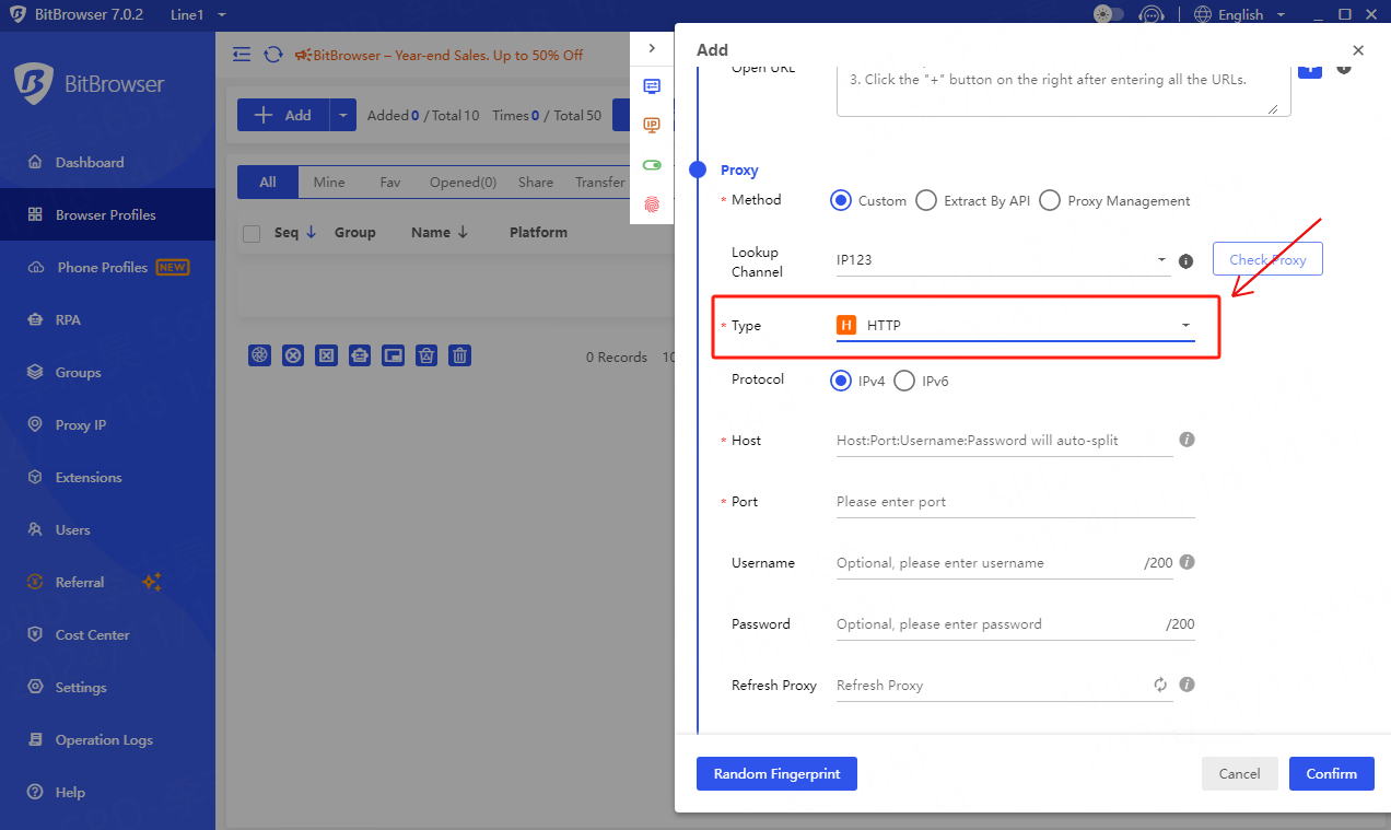 Select **\[Browser Profiles]** in the left navigation bar and click to create